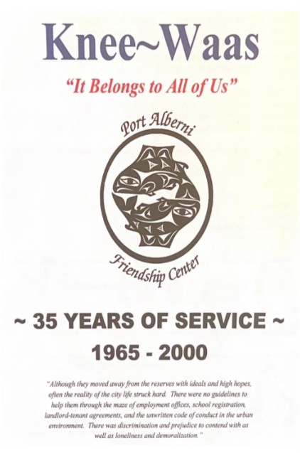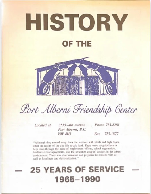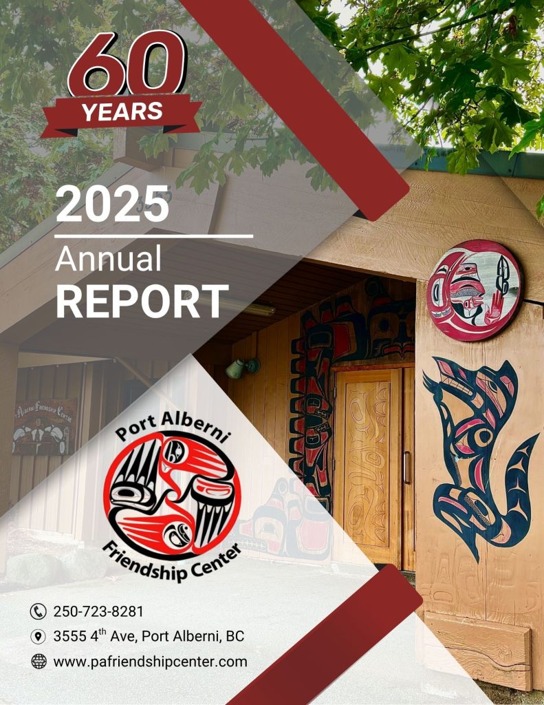 The Port Alberni Friendship Center is an Indigenous Social service organization which was established in 1965 and is one of more than 100 friendship centers across Canada, 25 of which are located in BC, which opens their doors to all community members with a mandate of providing services to Indigenous peoples living away from their home community.